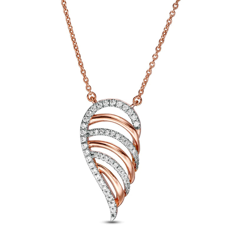 0.2 CT. T.W. Natural Diamond Multi-Row Single Wing Necklace in 10K Rose Gold