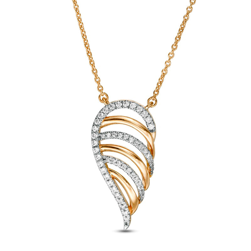 0.2 CT. T.W. Natural Diamond Multi-Row Single Wing Necklace in 10K Yellow Gold