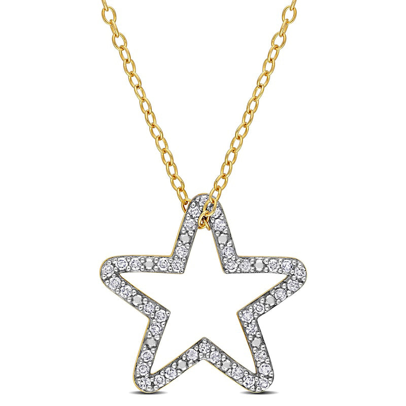 0.2 CT. T.W. Natural Diamond Star Outline Pendant in Sterling Silver with Yellow Rhodium Plate
