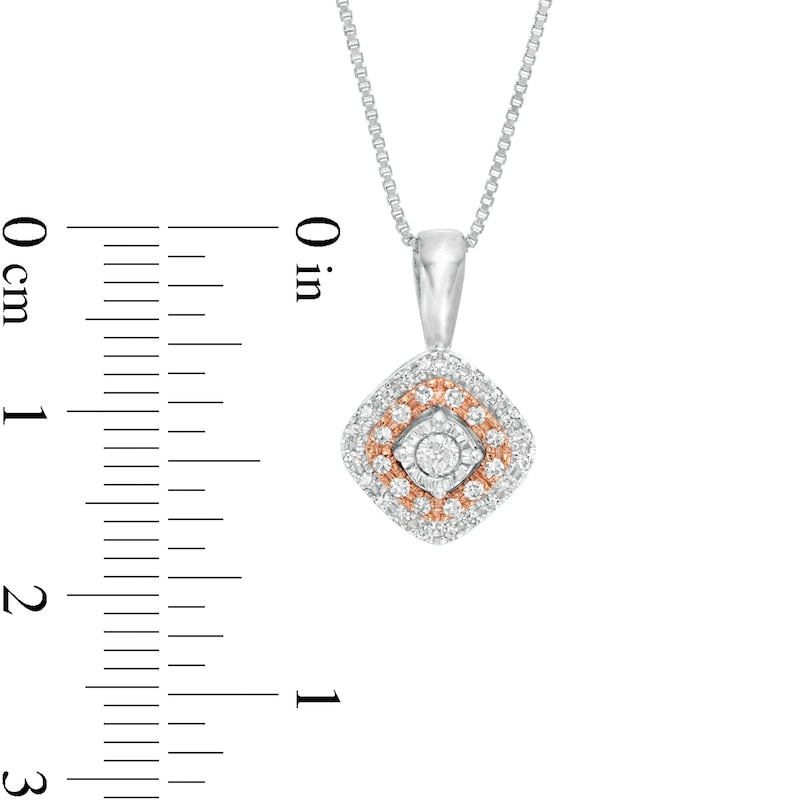 0.2 CT. T.W. Natural Diamond Tilted Cushion Frame Pendant in Sterling Silver and 10K Rose Gold