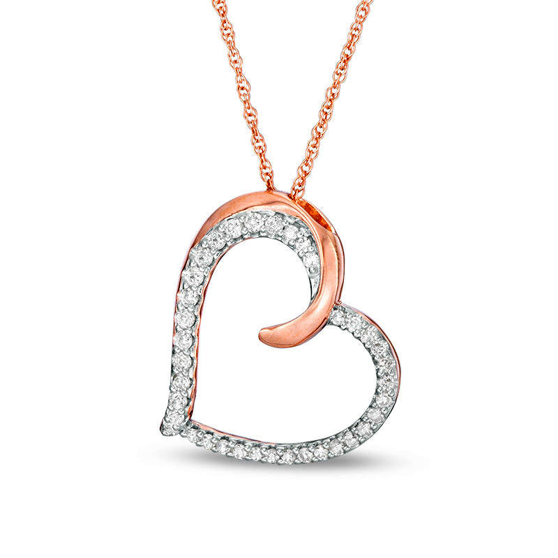 0.2 CT. T.W. Natural Diamond Tilted Heart Pendant in 10K Rose Gold