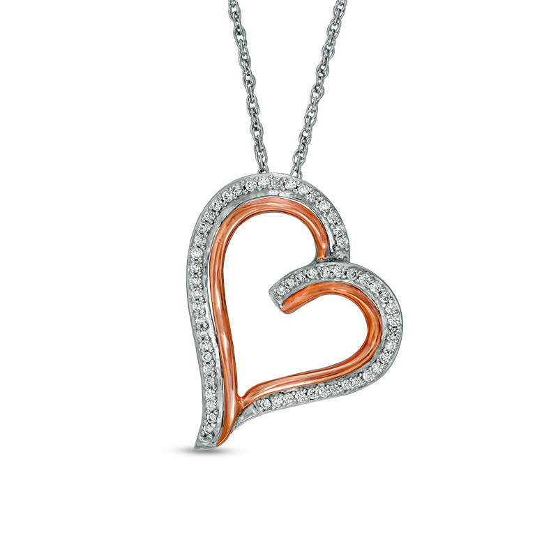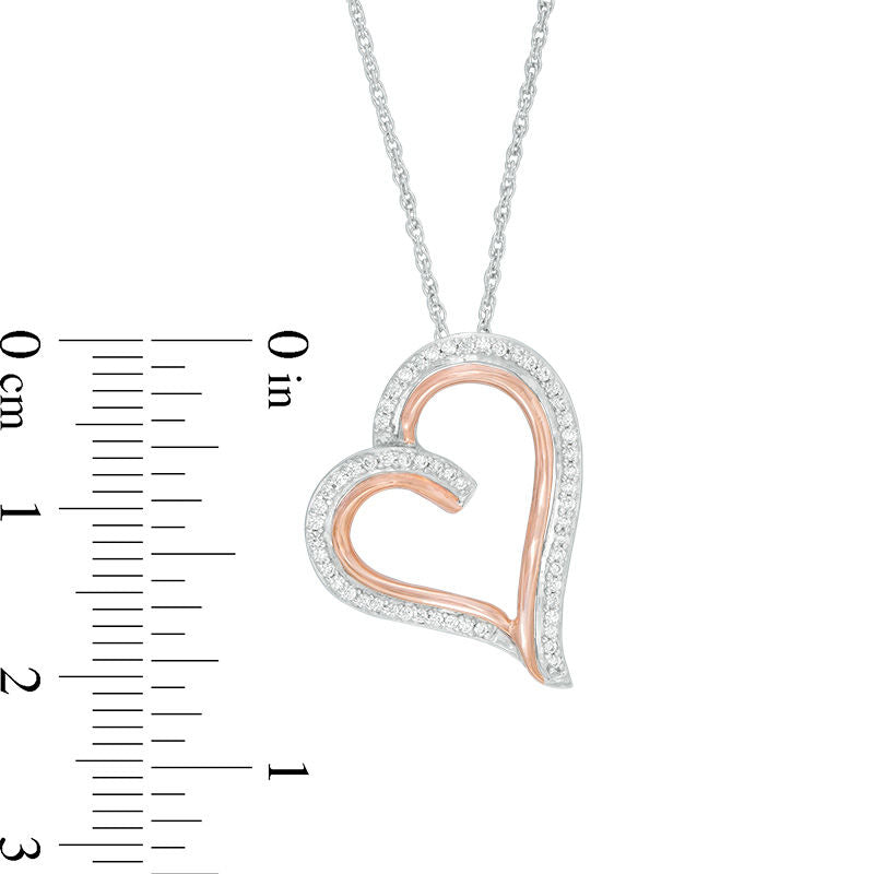 0.2 CT. T.W. Natural Diamond Tilted Heart Pendant in Sterling Silver and 10K Rose Gold