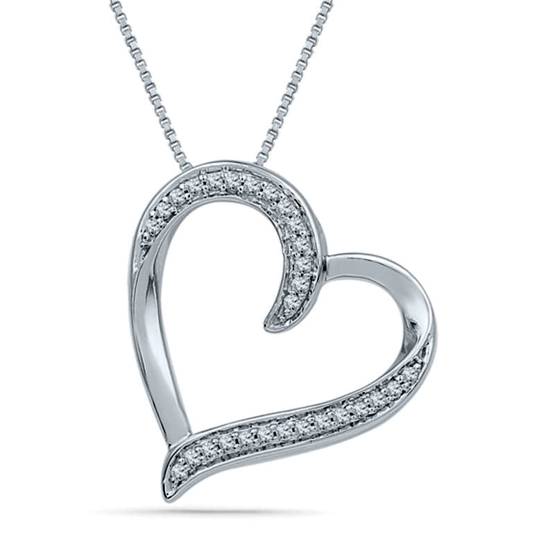 0.2 CT. T.W. Natural Diamond Tilted Heart Pendant in Sterling Silver