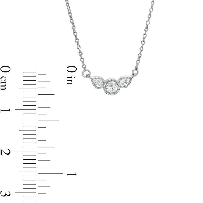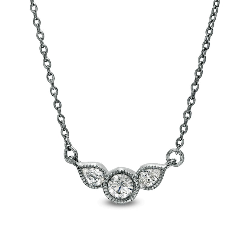 0.2 CT. T.W. Pear-Shaped Natural Diamond Three Stone Antique Vintage-Style Necklace in Sterling Silver