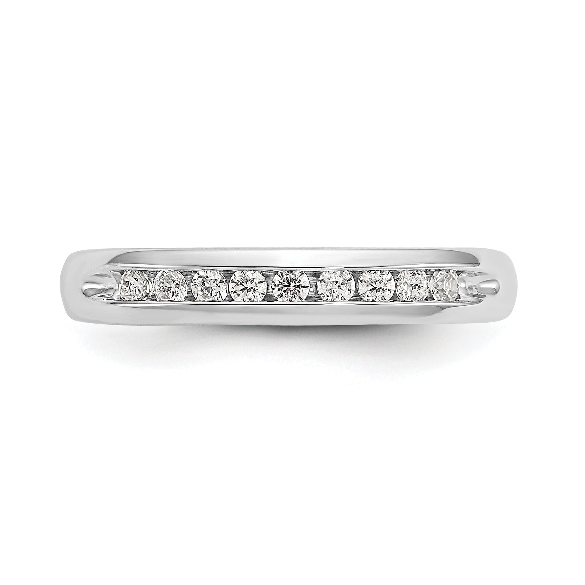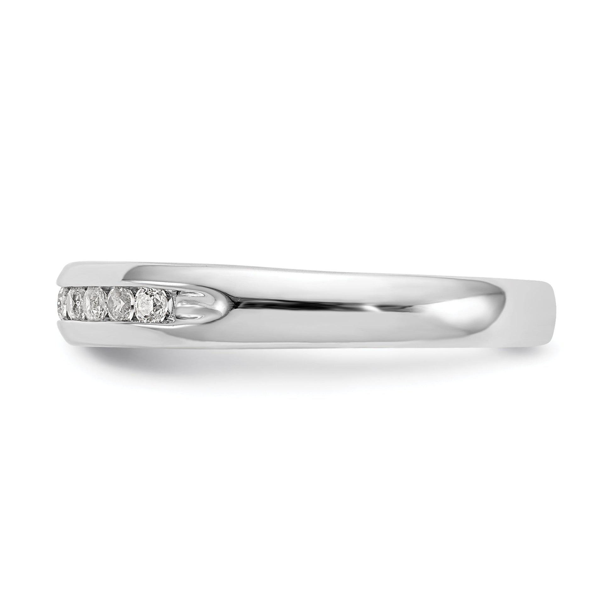 Your purchase is accompanied with a 30-day, hassle-free money-back guarantee and a complimentary gift box. In the unlikely event that you're not satisfied with your purchase after that, please contact us directly. We are a USA based company that prides itself on superior customer service. The band width of this ring is 3.6 to 2 mm (tapered), the stone weight is 0.0225 ct and the stone size is 1.7 mm. This ring is sold as an individual piece and is available in a range of sizes. With its polished finish and closed-back feature, you'll fall in love with this beautiful wedding band ring.