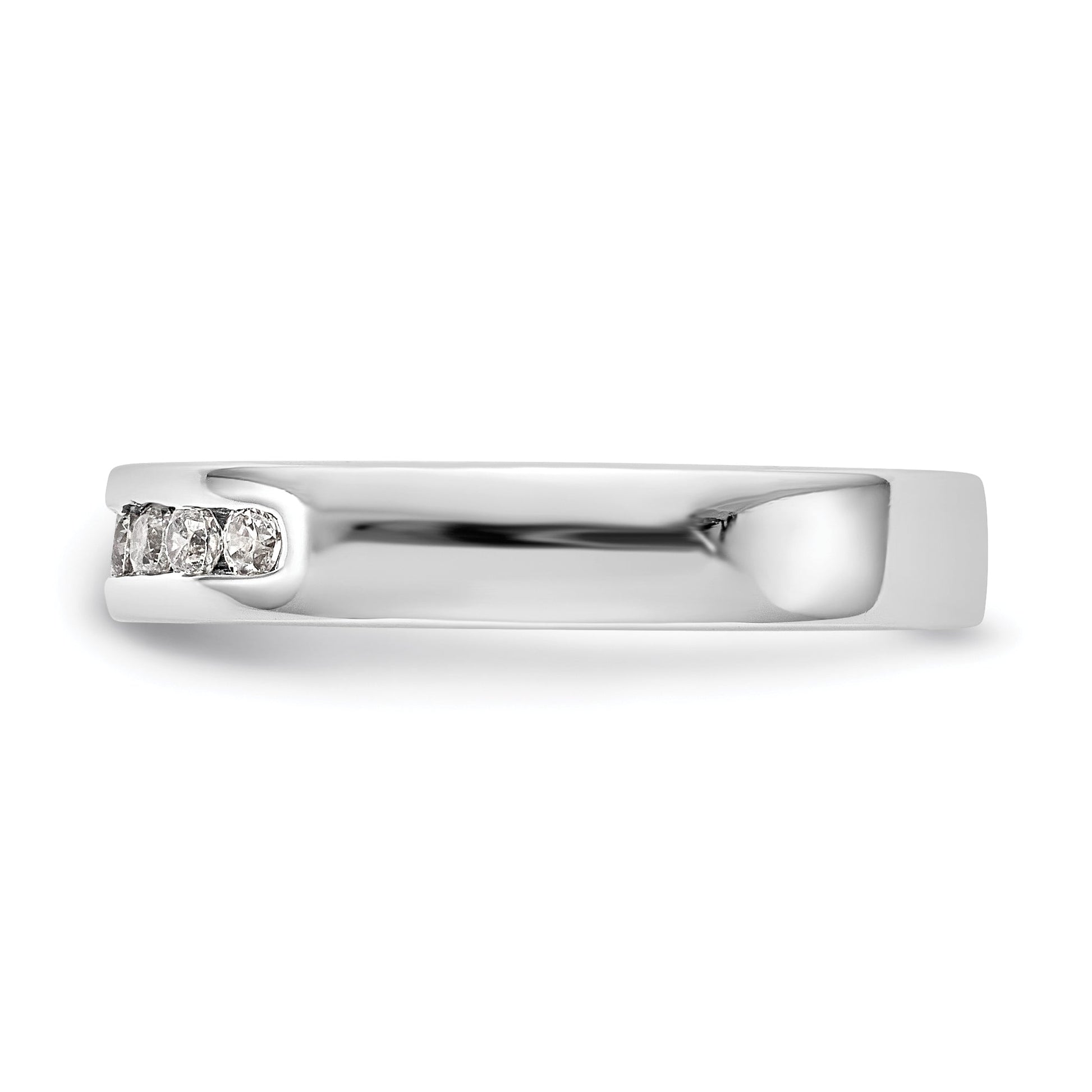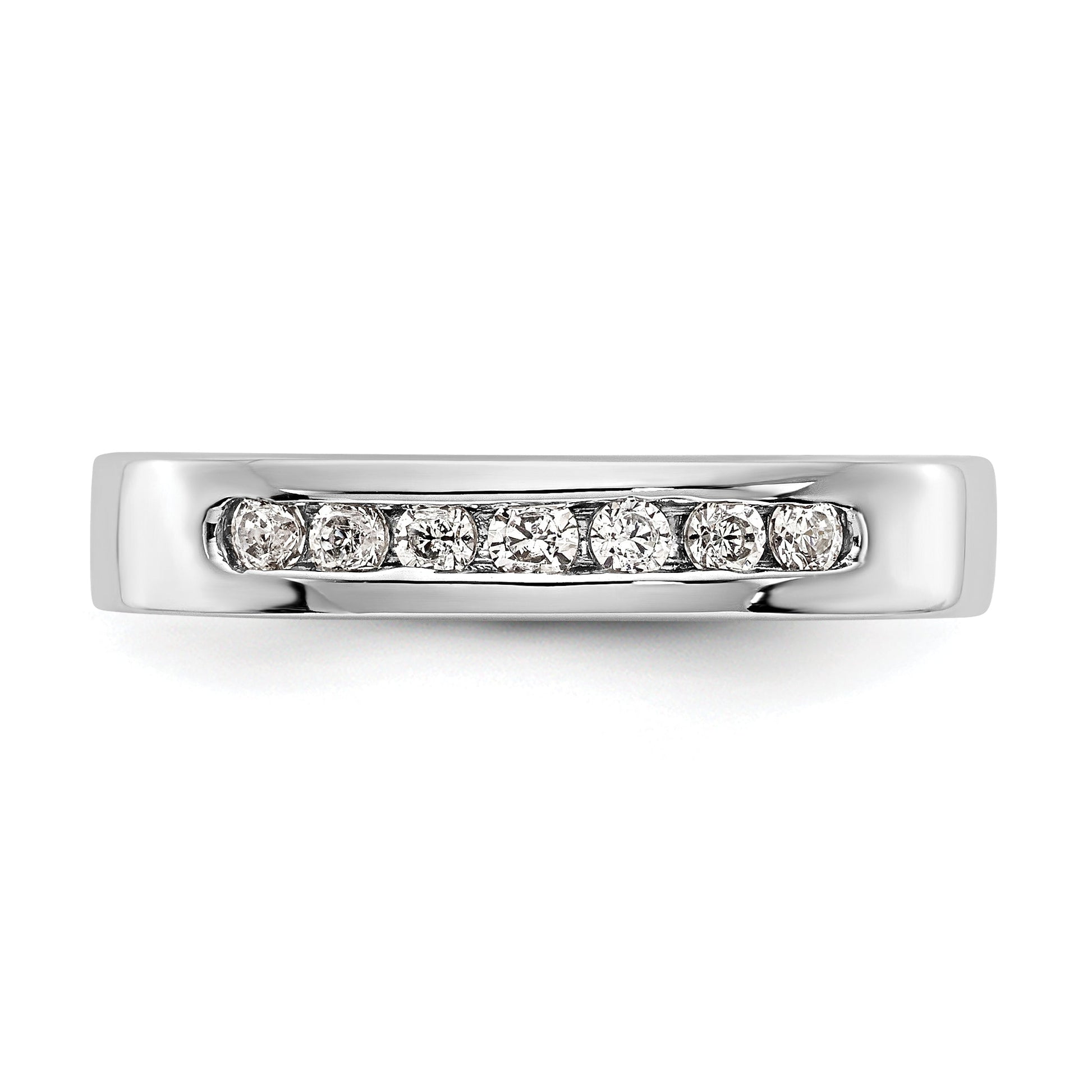 This is a ring made of 14k real gold that has a 0.20 carat cubic zirconia stone and 6 smaller stones set in a channel. The ring is polished and has a solid finish. It comes in white gold but can be made in yellow or rose gold upon request. You can also upgrade to natural diamonds by contacting the seller for pricing. This ring makes a great gift for special occasions like birthdays, weddings, or Valentine's Day. It also has a 30-day money-back guarantee and comes with a gift box.
