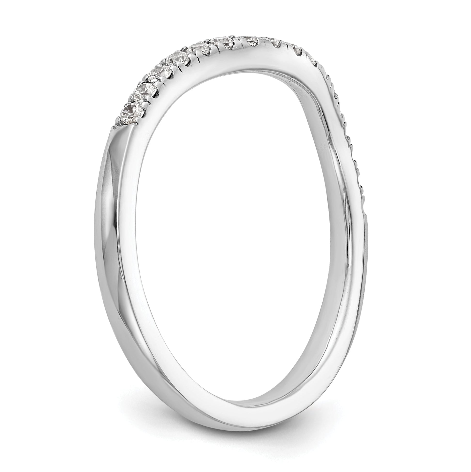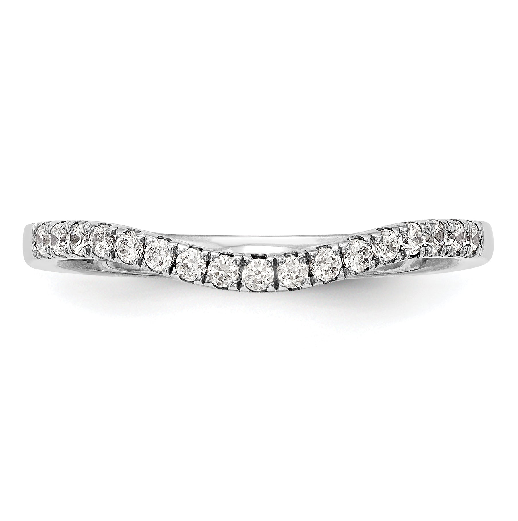 The ring features 17 cubic zirconia stones, and the band is tapered at 1.8 to 2mm width. The stone weight is 0.012ct, and the clarity is I1 (AA). The ring is available in sizes 6 to 8, with a sizing adjustment increment of 0.25. While it is complete with all its stones included, it is not recommended for engraving. This product is sold individually, making it perfect for those looking for one ring to complete their special day. The ring is also available in white color and is considered a closed back. The round-cut stones are sized at 1.4mm, and the overall thickness is less than two millimeters. Upgrade your wedding band game with this CZ Solid Real 14K White Gold Wedding Band Ring from Goldia today.