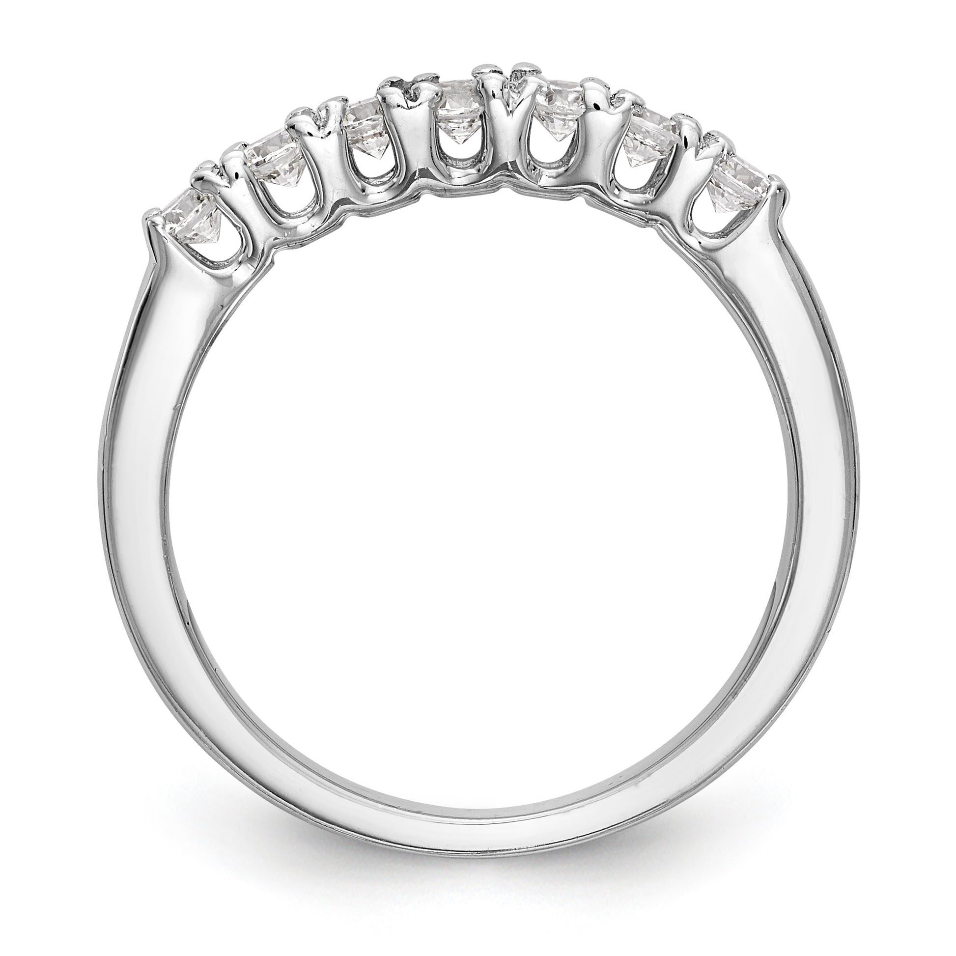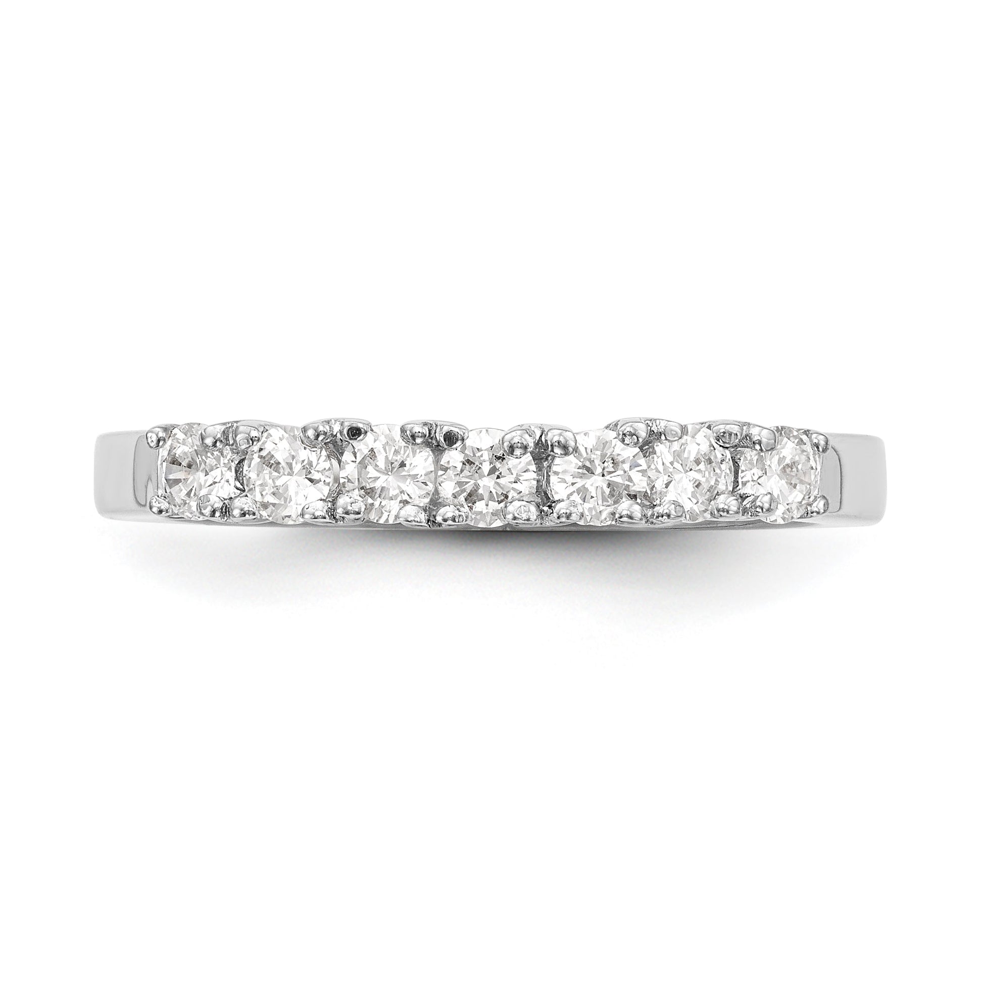 The band is 2mm wide and can be sized from 6 to 8, with a 0.25 sizing adjustment increment. The ring is complete with all stones included and has a closed back. It is polished to a high shine, making it a perfect addition to any jewelry collection. Order now and experience the beauty and luxury of this exceptional 14k white gold wedding band ring!