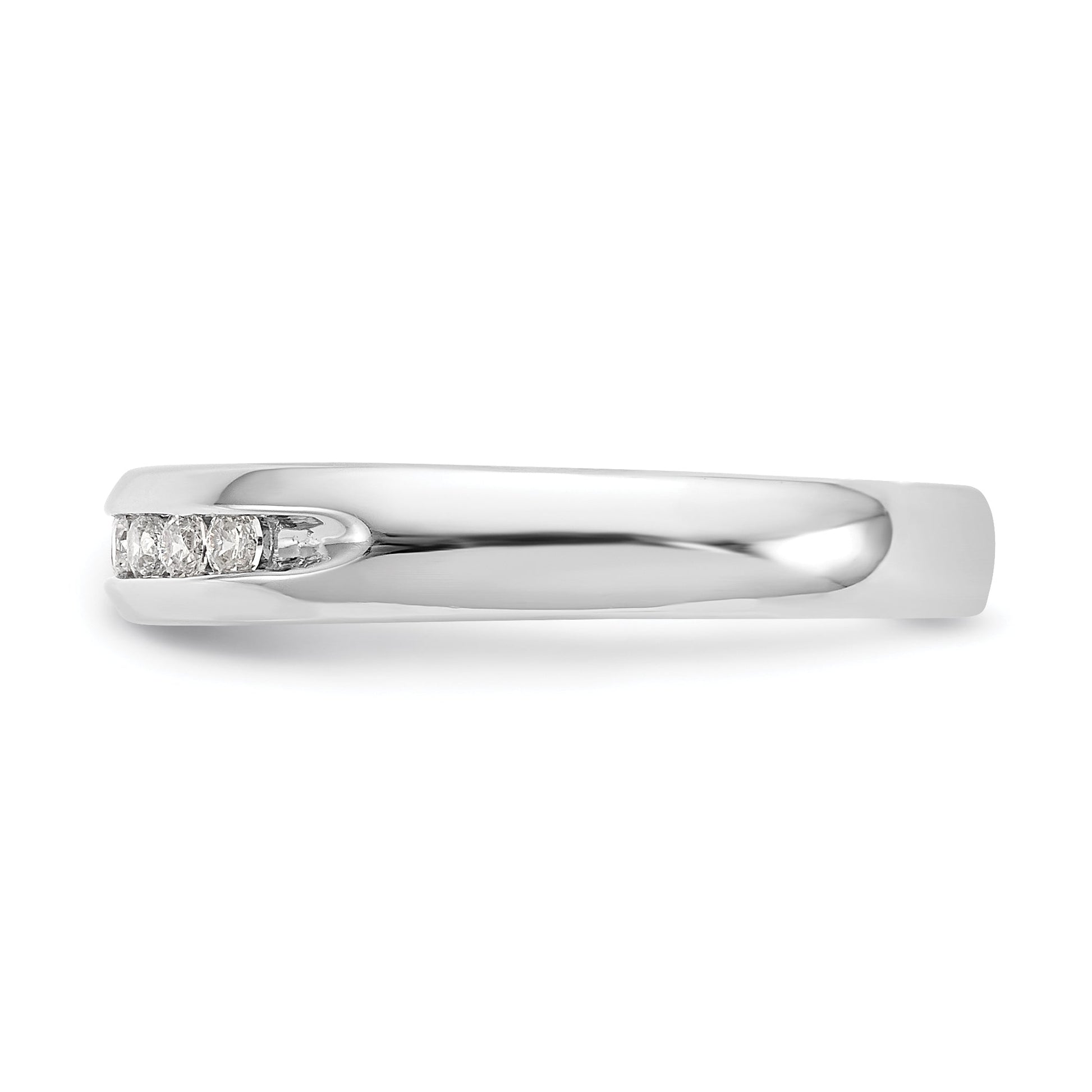 Material Primary - Purity 14K, Finish Polished, Stone Type_1 CZ (Cubic Zirconium), Stone Quantity_1 9, Plating Rhodium, Band Width 3.7 to 3.1 mm (tapered), Stone Weight_1 0.025 ct, Stone Clarity_1 I1 (AA), Size (Minimum) 6, Size (Maximum) 8, Sizing Adjustment Increment 0.25, Feature Solid, Manufacturing Process Casted, Material Primary Gold, Completeness Complete (all stones included), Sizeable Yes, Stone Shape_1 Round, Stone Size_1 1.8 mm, Thickness < 1.5 mm, Engravable Not Recommended, Product Type Jewelry, Jewelry Type Rings, Sold By Unit Each, Material Primary - Color White, Ring Type Wedding Bands, Feature 2 Closed Back, Stone Creation Method_1 Synthetic.