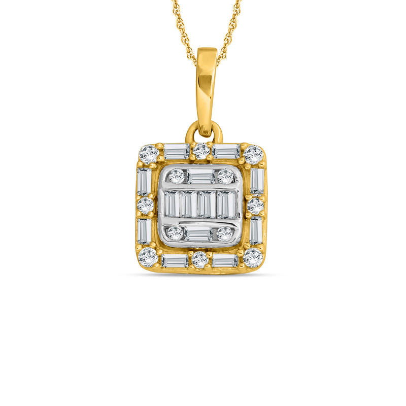 0.25 CT. T.W. Baguette and Round Natural Diamond Cushion Frame Pendant in 10K Yellow Gold