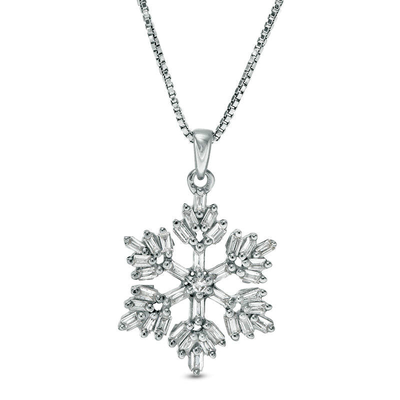 0.25 CT. T.W. Baguette and Round Natural Diamond Snowflake Pendant in Sterling Silver