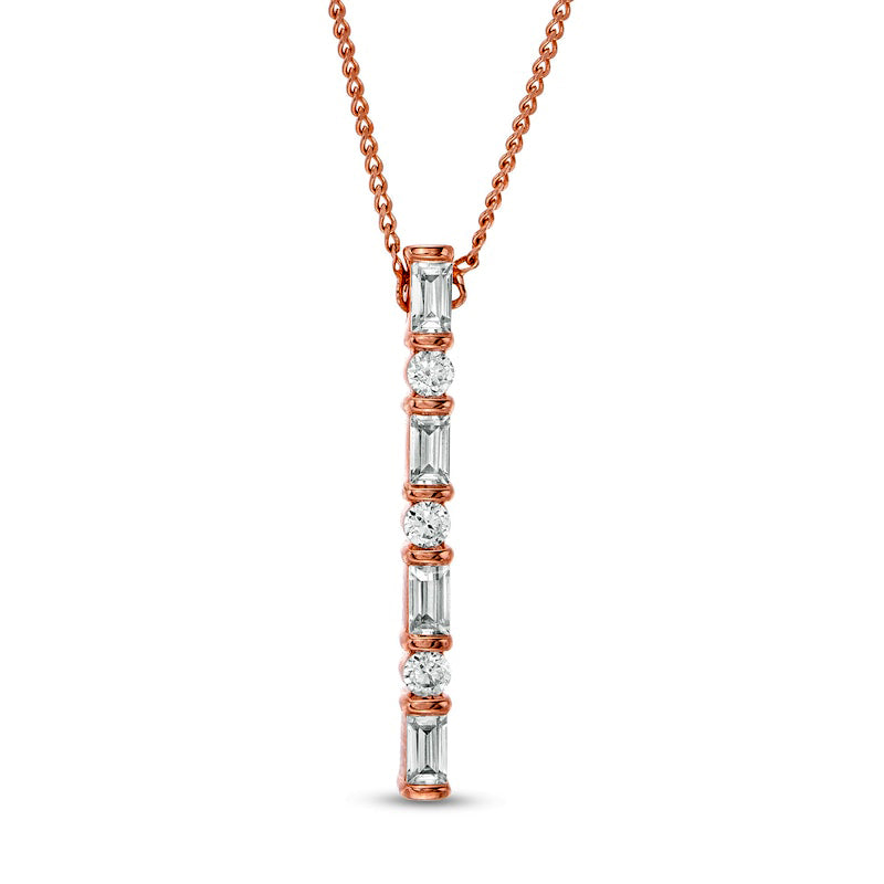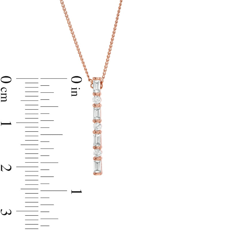 0.25 CT. T.W. Baguette and Round Natural Diamond Vertical Bar Pendant in 10K Rose Gold