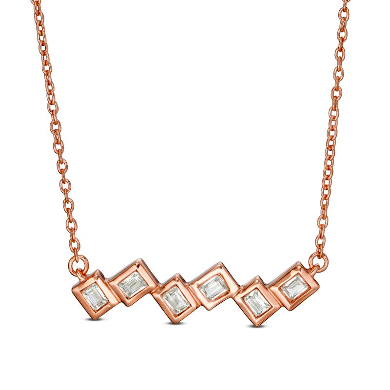 0.25 CT. T.W. Baguette Natural Diamond Zigzag Bezel-Set Necklace in 10K Rose Gold