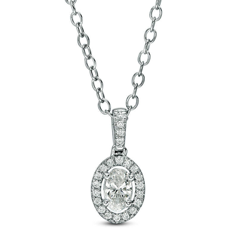 0.25 CT. T.W. Certified Oval Natural Diamond Frame Pendant in 14K White Gold (I/I1)