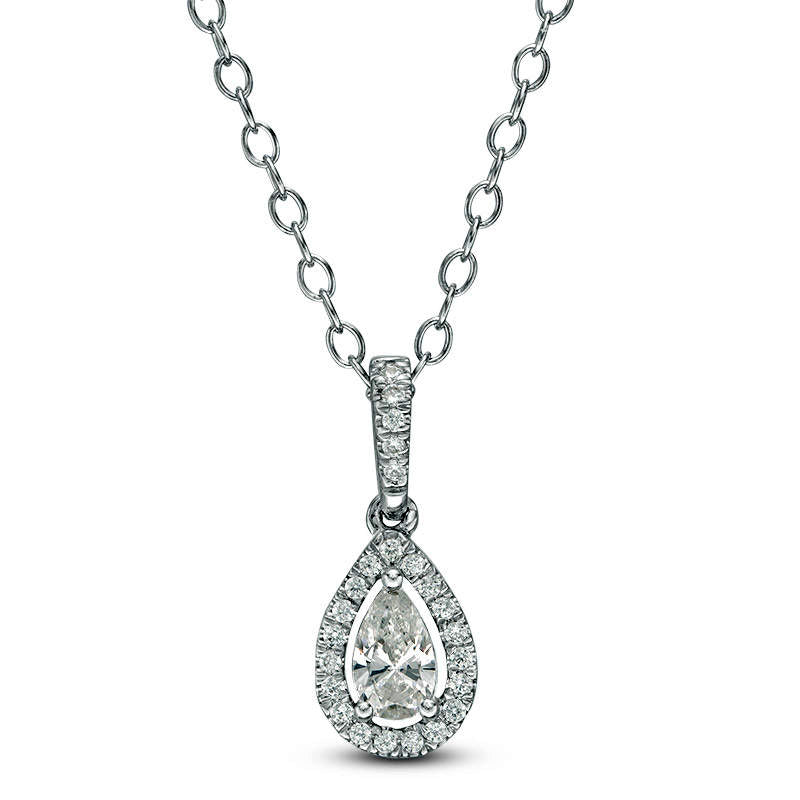 0.25 CT. T.W. Certified Pear-Shaped Natural Diamond Frame Pendant in 14K White Gold (I/I1)