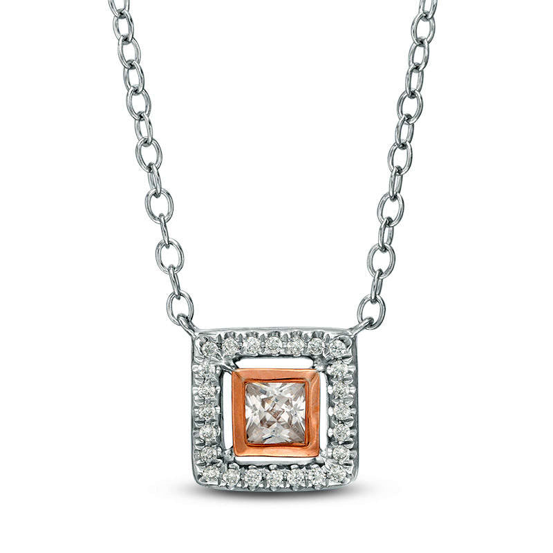 0.25 CT. T.W. Certified Princess-Cut Natural Diamond Frame Necklace in 14K Two-Tone Gold (I/I1)