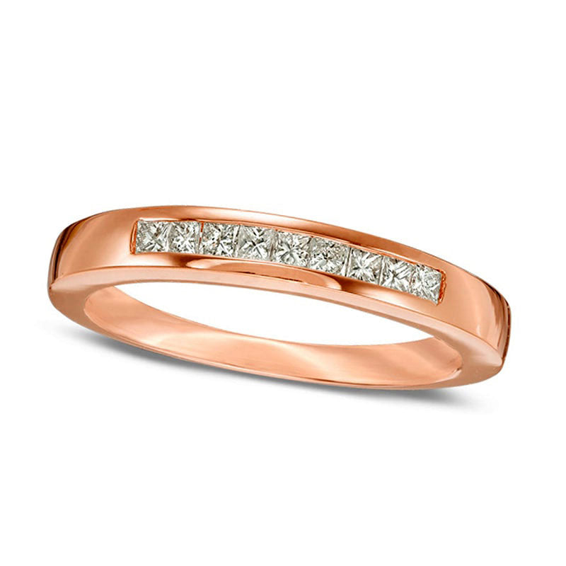 0.25 CT. T.W. Certified Princess-Cut Natural Diamond Nine Stone Anniversary Band in Solid 14K Rose Gold (I/I1)