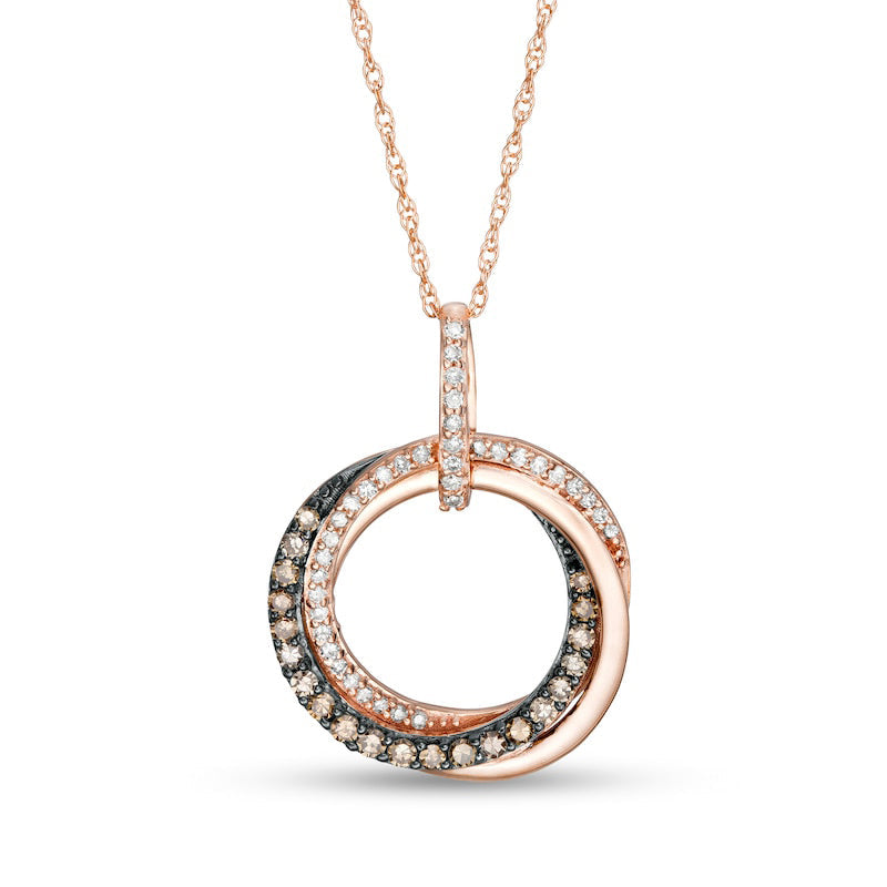 0.25 CT. T.W. Champagne and White Natural Diamond Entwined Circle Pendant in 10K Rose Gold