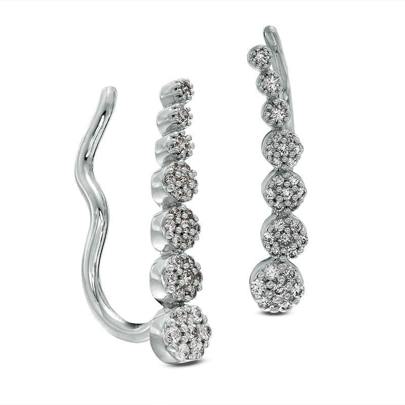 0.25 CT. T.W. Composite Diamond Tapered Circles Crawler Earrings in 10K White Gold