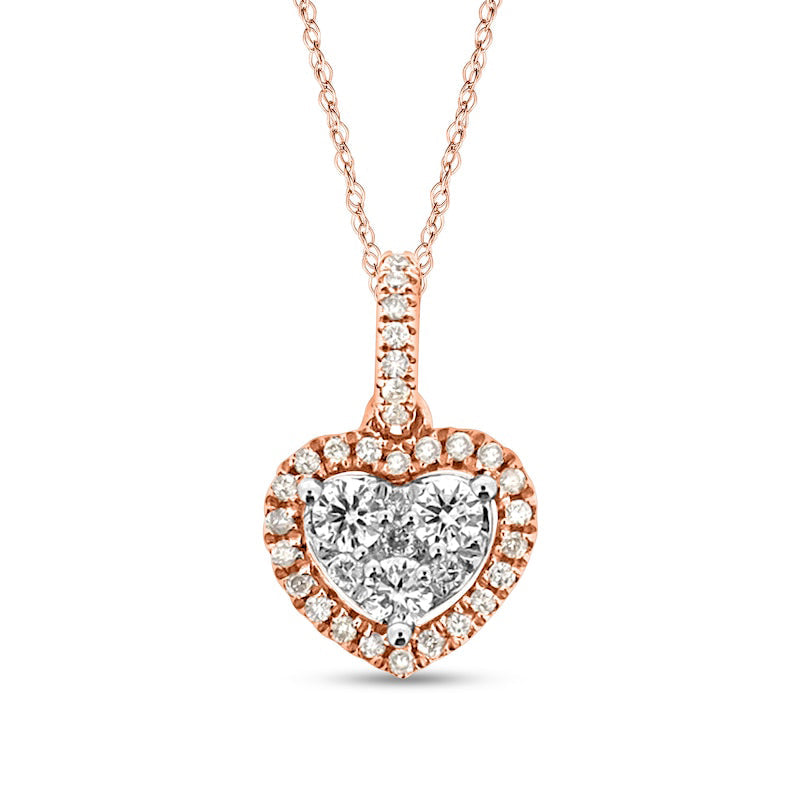 0.25 CT. T.W. Composite Heart Natural Diamond Frame Pendant in 10K Rose Gold