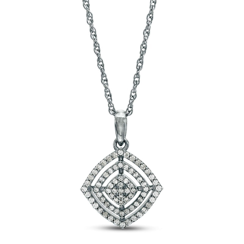 0.25 CT. T.W. Composite Natural Diamond Double Tilted Cushion Frame Pendant in 10K White Gold