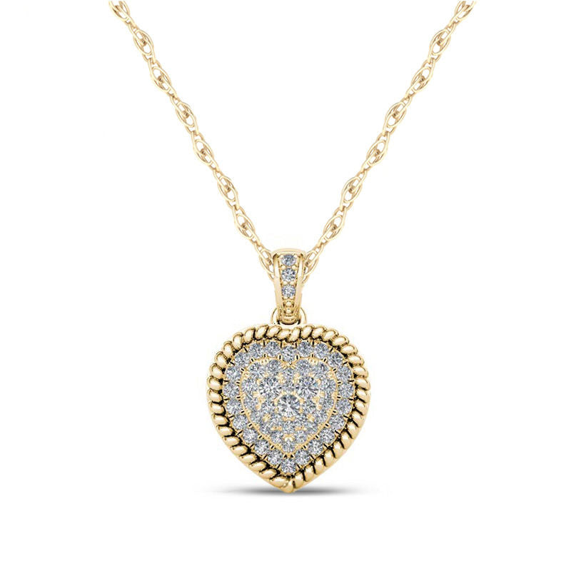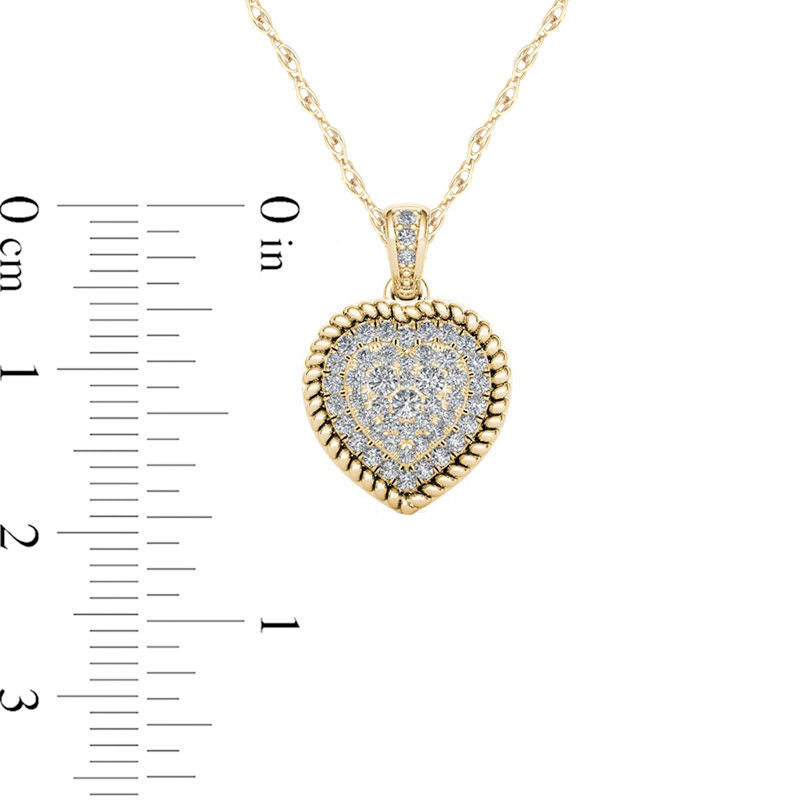 0.25 CT. T.W. Composite Natural Diamond Heart-Shaped Rope Frame Pendant in 10K Yellow Gold