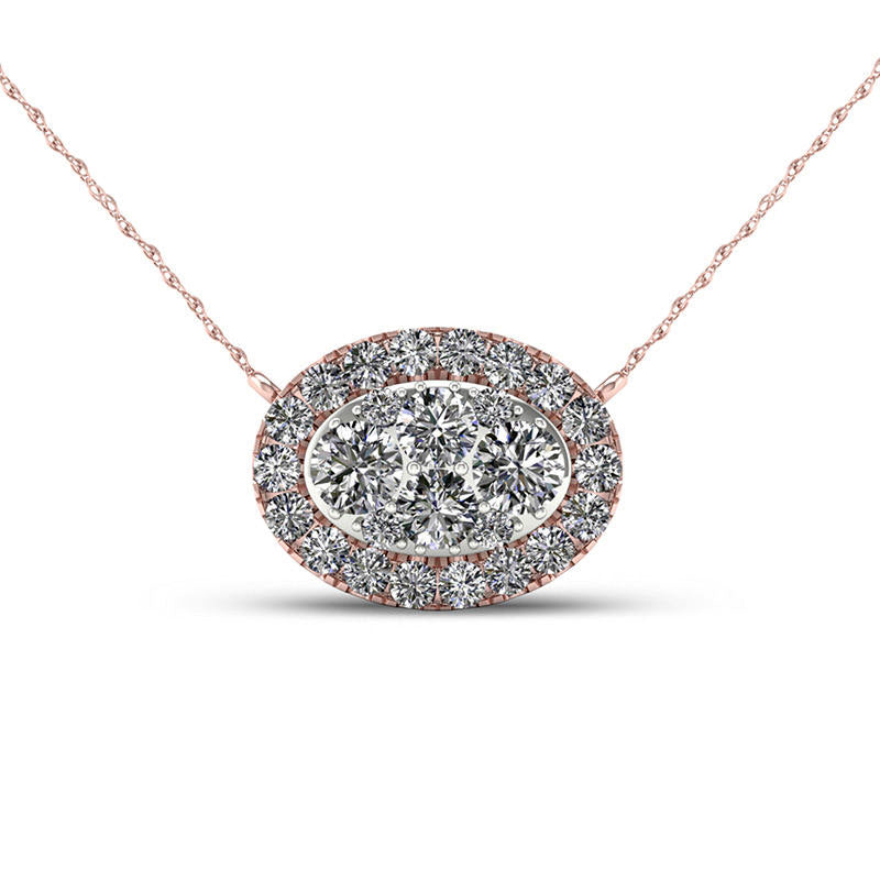 0.25 CT. T.W. Composite Natural Diamond Oval Frame Necklace in 10K Rose Gold