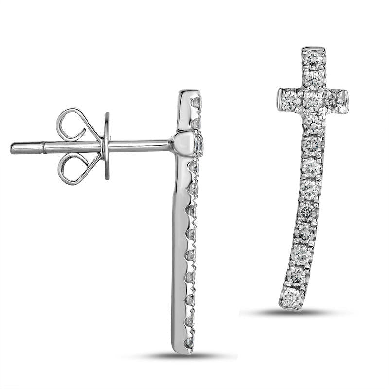 0.25 CT. T.W. Diamond Curved Cross Crawler Earrings in 10K White Gold