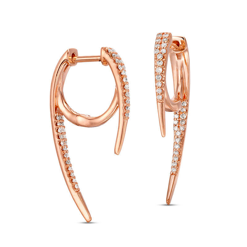 0.25 CT. T.W. Diamond Curved Vertical Bar Front/Back Earrings in 10K Rose Gold