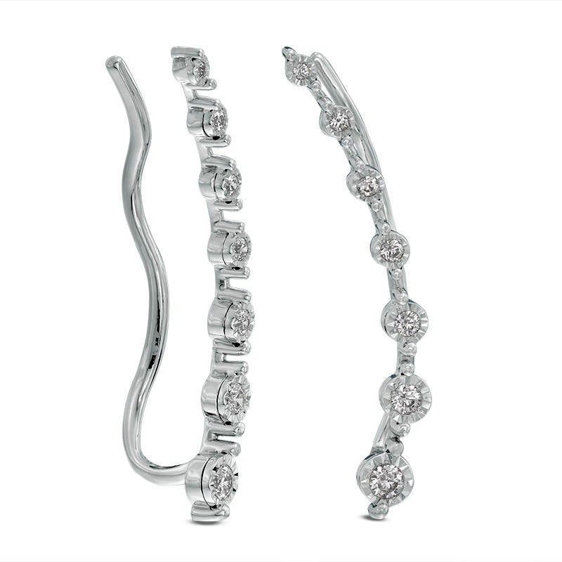 0.25 CT. T.W. Diamond Station Crawler Earrings in 10K White Gold