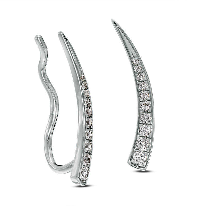 0.25 CT. T.W. Diamond Tapered Curve Crawler Earrings in 10K White Gold