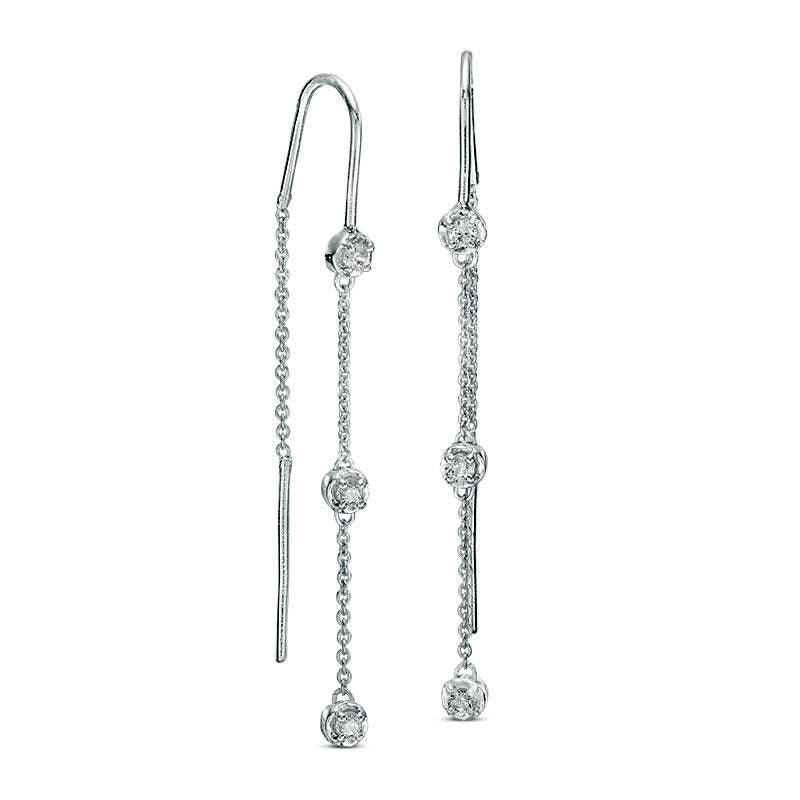 0.25 CT. T.W. Diamond Three Stone Threader Earrings in 10K White Gold