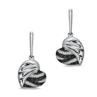 0.25 CT. T.W. Enhanced Black and White Diamond Heart Drop Earrings in Sterling Silver