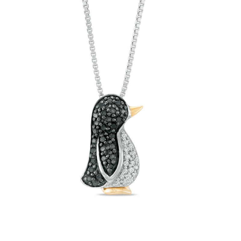 0.25 CT. T.W. Enhanced Black and White Natural Diamond Penguin Pendant in Sterling Silver and 14K Gold