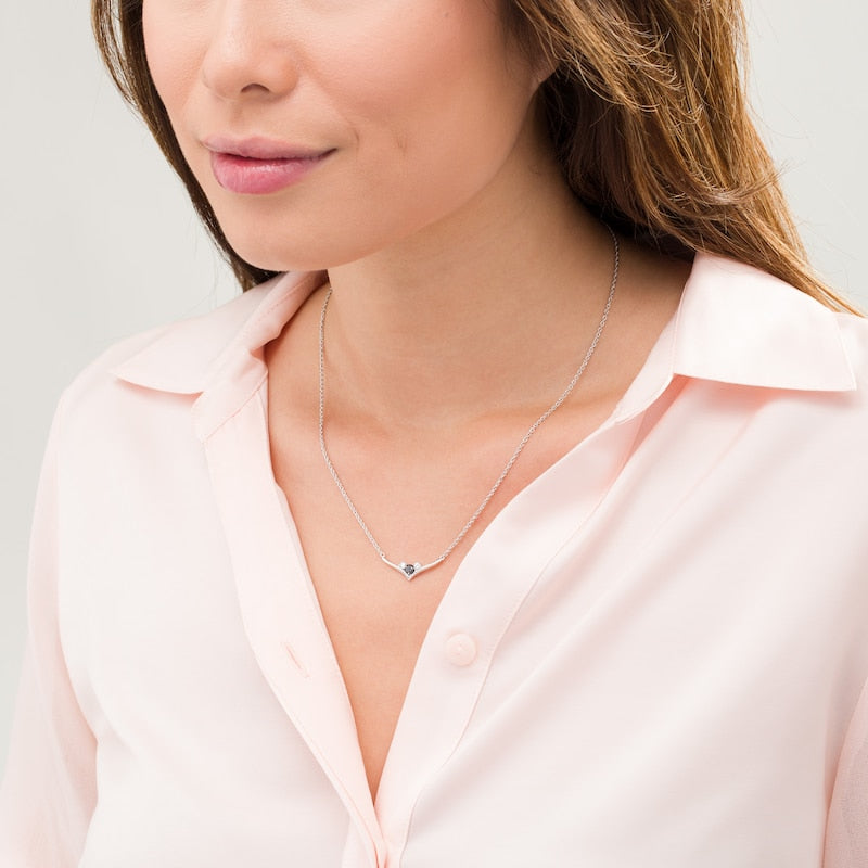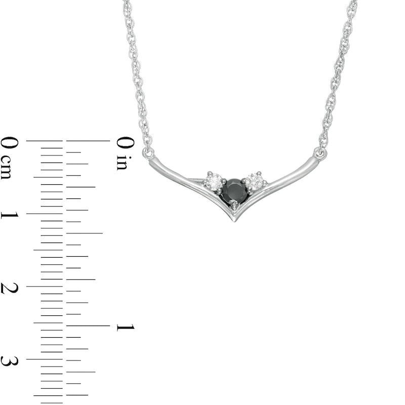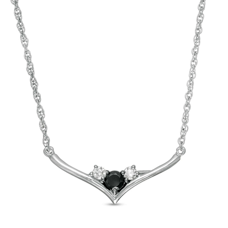 0.25 CT. T.W. Enhanced Black and White Natural Diamond Three Stone Chevron Necklace in Sterling Silver