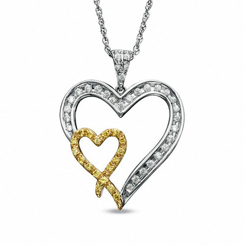 0.25 CT. T.W. Enhanced Yellow and White Natural Diamond Double Heart Pendant in Sterling Silver