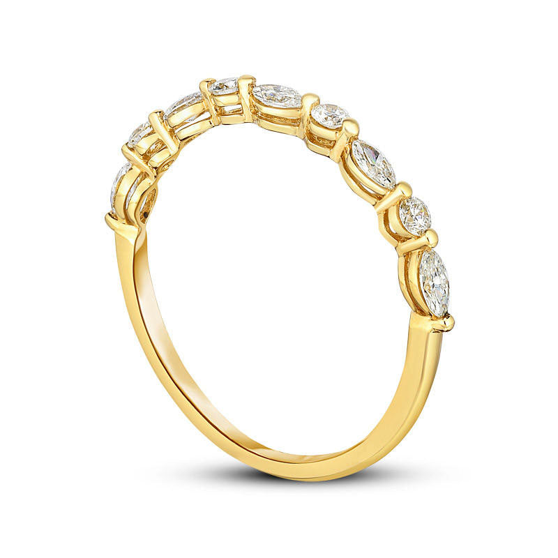 0.25 CT. T.W. Marquise and Round Natural Diamond Alternating Stackable Band in Solid 14K Gold