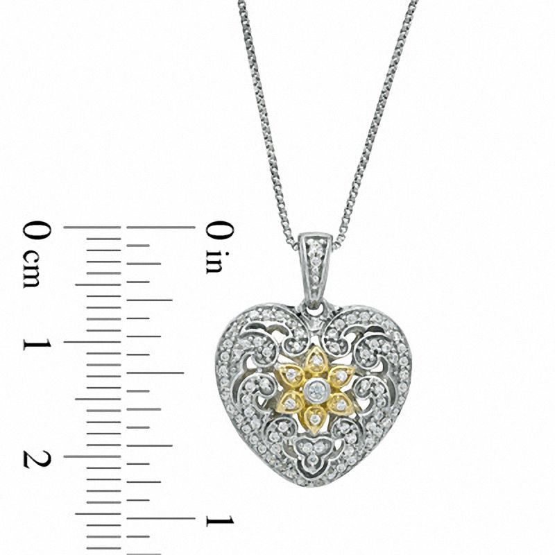 0.25 CT. T.W. Natural Diamond Antique Vintage-Style Heart Pendant in Sterling Silver and 14K Gold Plate