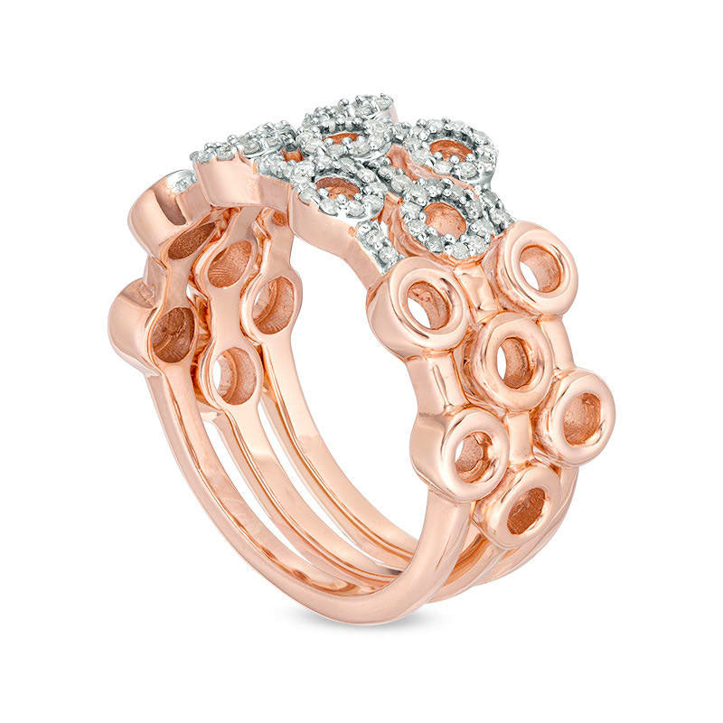 0.25 CT. T.W. Natural Diamond Circle Outline Three Piece Stackable Band Set in Sterling Silver with Solid 14K Rose Gold Plate