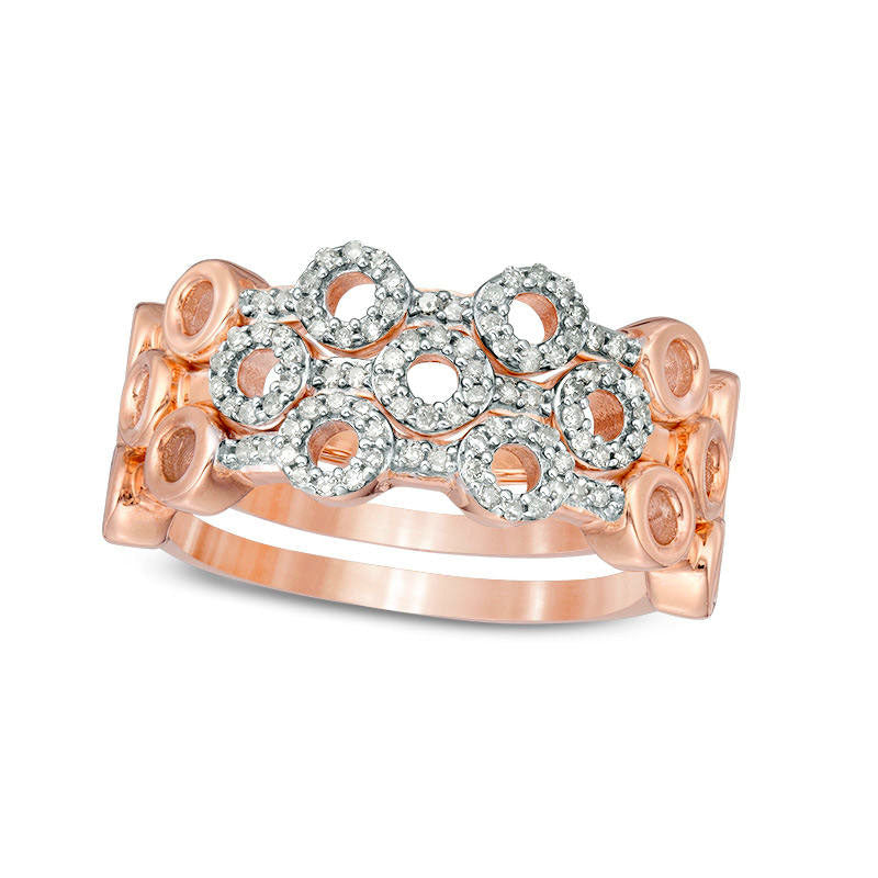 0.25 CT. T.W. Natural Diamond Circle Outline Three Piece Stackable Band Set in Sterling Silver with Solid 14K Rose Gold Plate