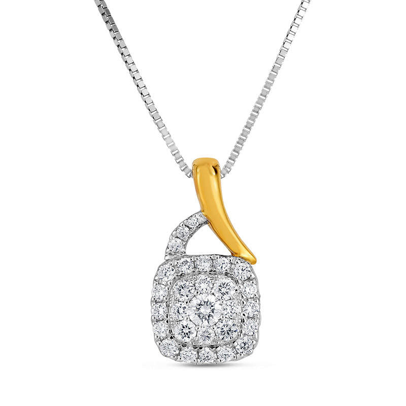 0.25 CT. T.W. Natural Diamond Double Cushion Frame Pendant in 10K Two-Tone Gold