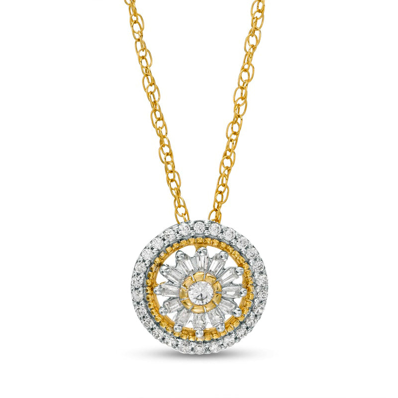 0.25 CT. T.W. Natural Diamond Double Frame Convertible Circle Pendant in 10K Yellow Gold