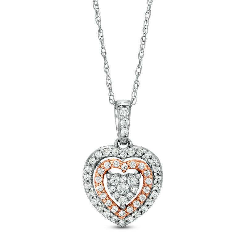 0.25 CT. T.W. Natural Diamond Double Frame Heart Pendant in 10K Two-Tone Gold