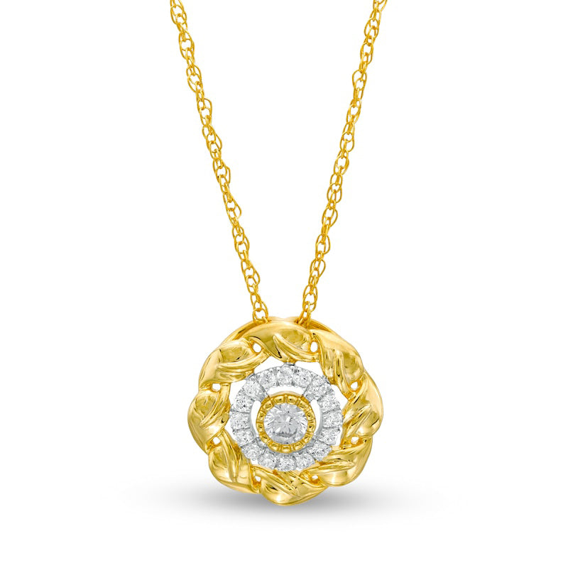 0.25 CT. T.W. Natural Diamond Flower Frame Pendant in 10K Yellow Gold