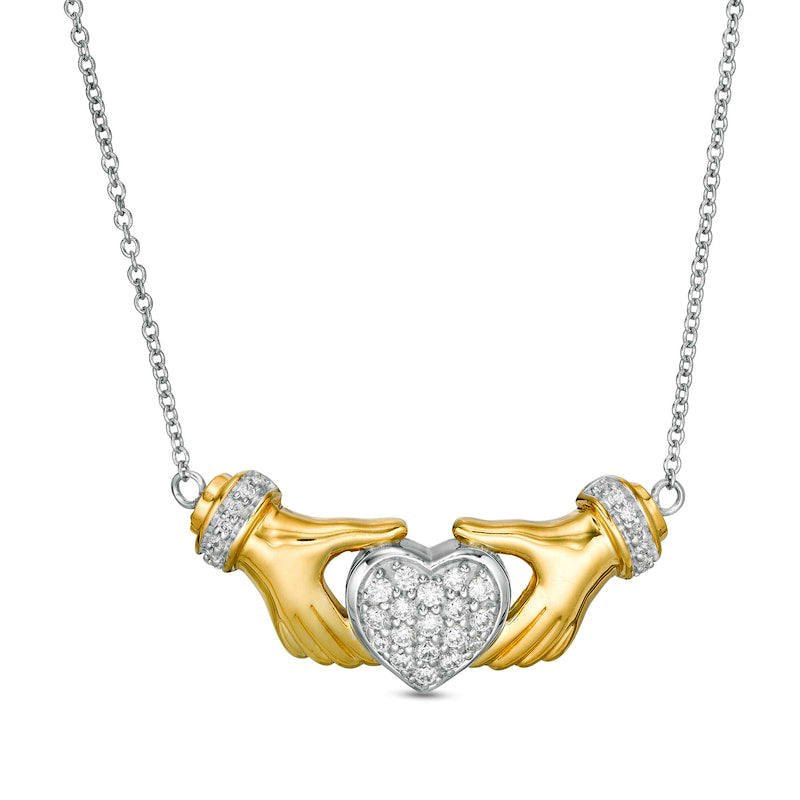 0.25 CT. T.W. Natural Diamond Heart Claddagh Necklace in Sterling Silver and 14K Gold Plate