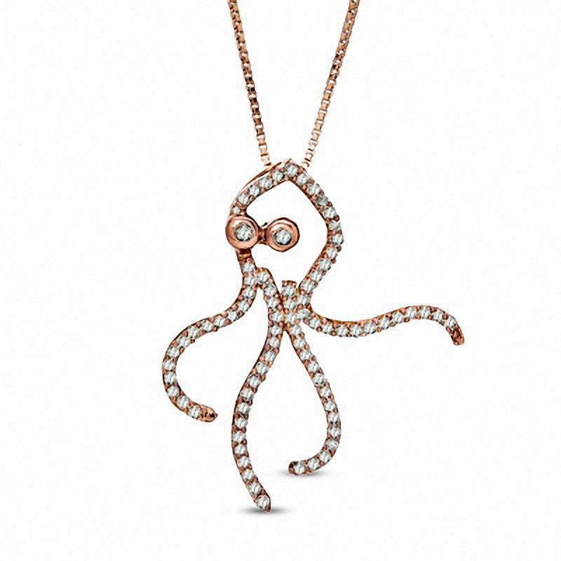0.25 CT. T.W. Natural Diamond Octopus Pendant in Sterling Silver and 14K Rose Gold Plate