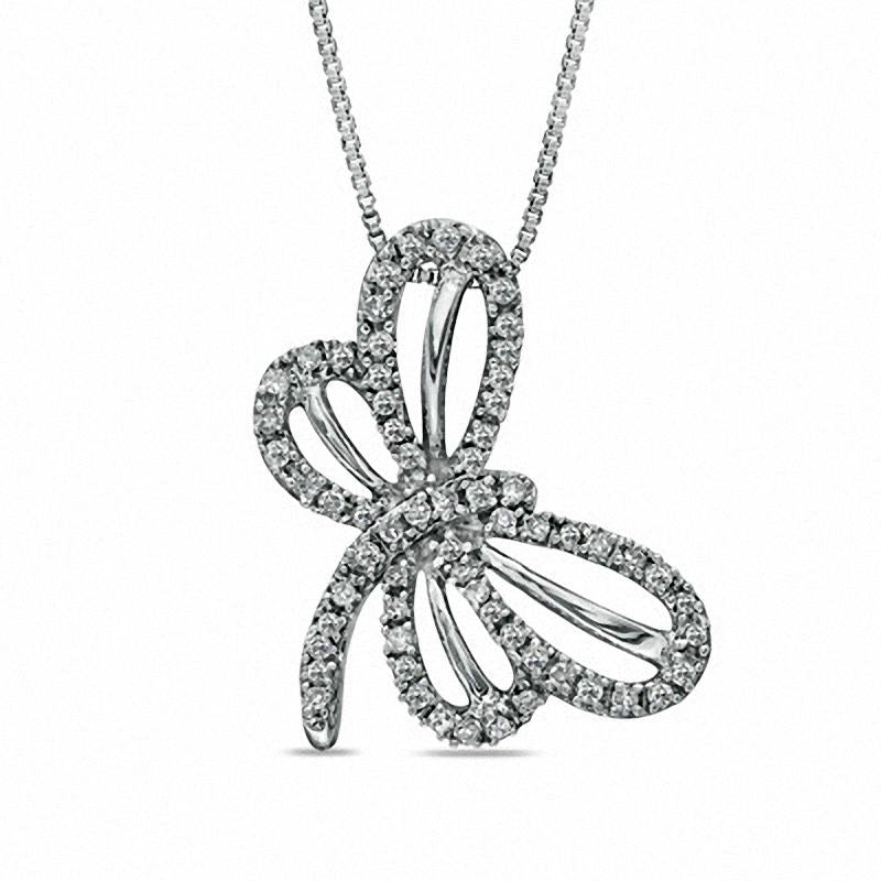 0.25 CT. T.W. Natural Diamond Tilted Dragonfly Pendant in Sterling Silver