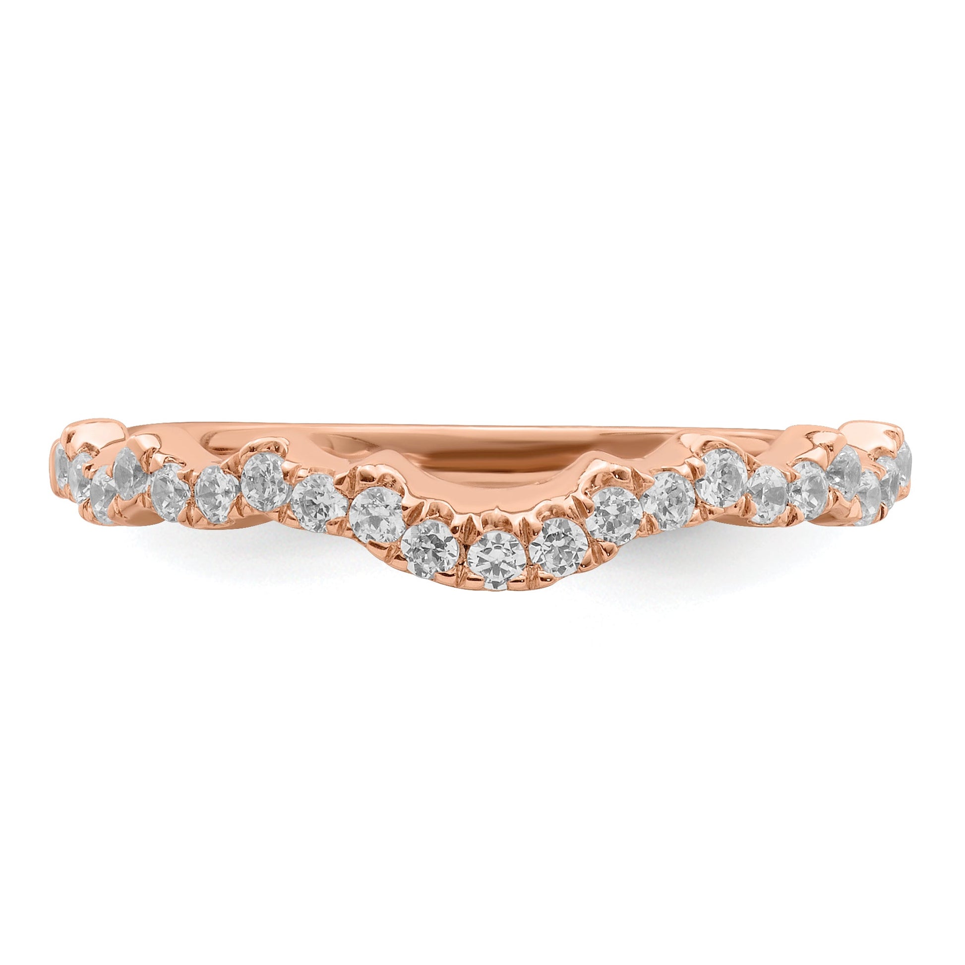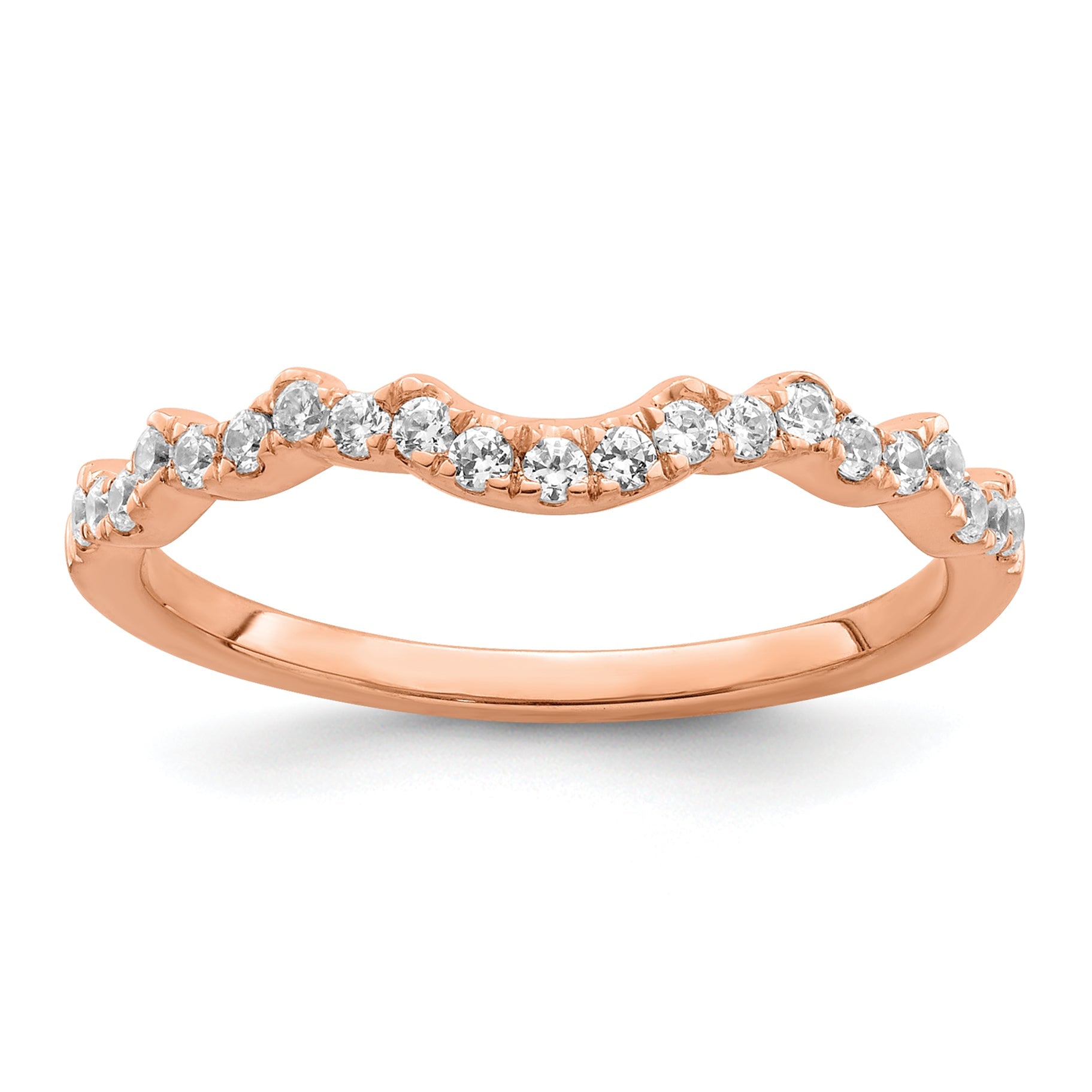 This is a beautiful ring that is made of real 14k gold and has a 0.25ct cubic zirconia stone. The gold is stamped with 14k to show it's real and won't change color or rust. The stone is hand-set by experienced jewelers and is very high quality. If you want real diamonds instead, you can contact us for a price. This ring makes a great gift for any occasion and comes with a gift box. If you're not happy with your purchase, you can return it within 30 days for a refund. The band is tapered and has 21 stones, with a width of 1.5 to 2.2 mm. It's perfect for weddings or everyday wear.