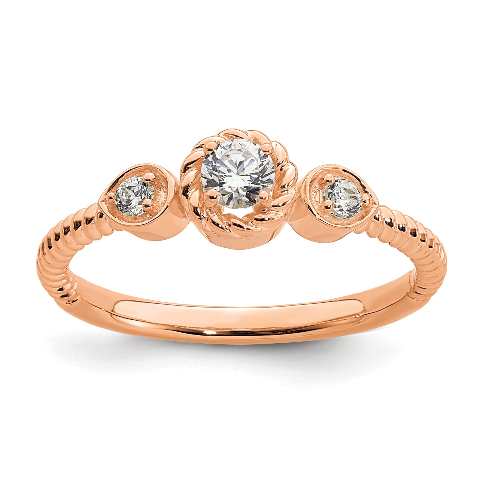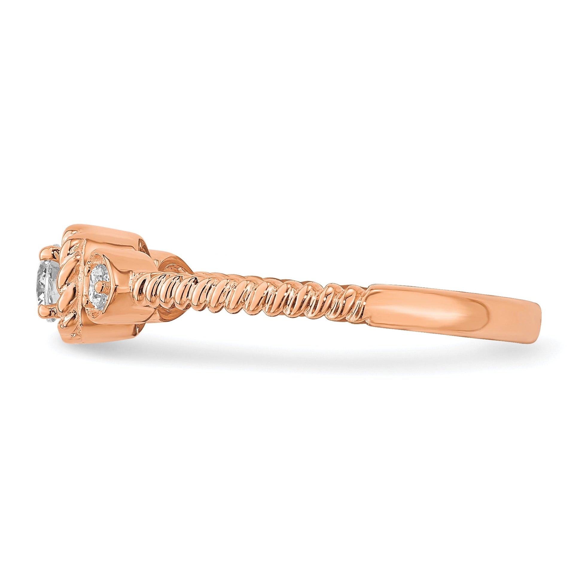 Purchase our 0.25ct. CZ Solid Real 14k Rose Polish Roped Wedding Band Ring today and let it be the showstopper that completes your look.