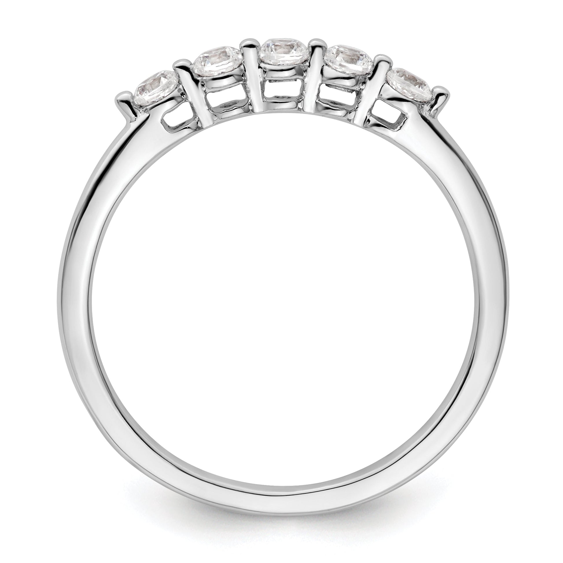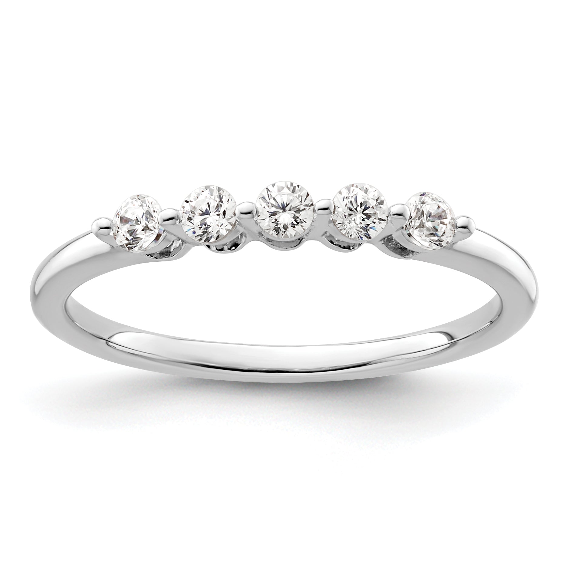 Our USA based company is committed to ensuring your satisfaction with a hassle-free 30 day money-back guarantee and a complimentary gift box. The band has a tapered width of 2.3 to 1.5mm, features five round CZ stones weighing a total of 0.05ct and has a closed back. The ring is complete and all stones are included. It is also sizeable with an adjustment increment of 0.25, but engraving is not recommended. Order now and add a touch of elegance to any outfit with this stunning wedding band ring.